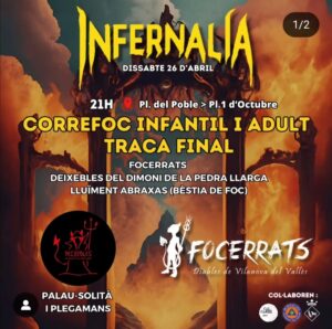 DISSABTE 26 D’ABRIL a les 21h, es celebrarà el CORREFOC d’Infernàlia!