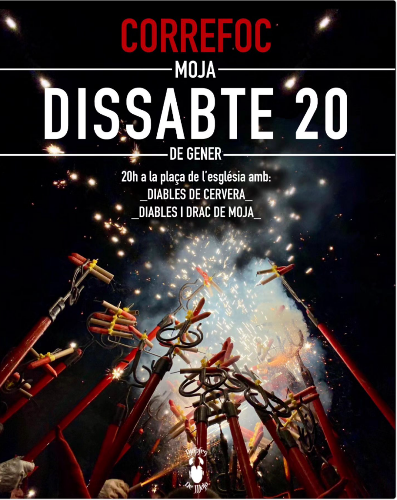 El dissabte 20 de gener de 2024 tindrà lloc el Correfoc de Moja amb els Diables de Cervera i els Diables i Drac de Moja!