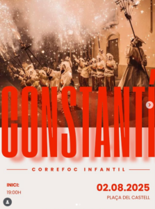 – Dissabte 2, els més petits participaran al Correfoc Infantil organitzat per @coca.constanti. 19h a Pl. del Castell.