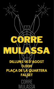 El dilluns 14 d’agost, a les 00 h a la plaça de la Quartera de Falset tindrà lloc el CORREMULASSA 2023!