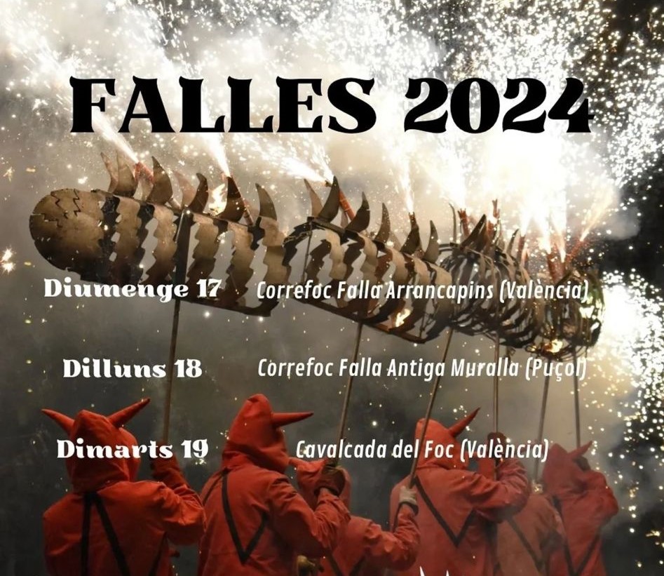 Els pròxims dies 17, 18 i 19 març la colla de Dimonis de Massalfassar, faran correfocs per: