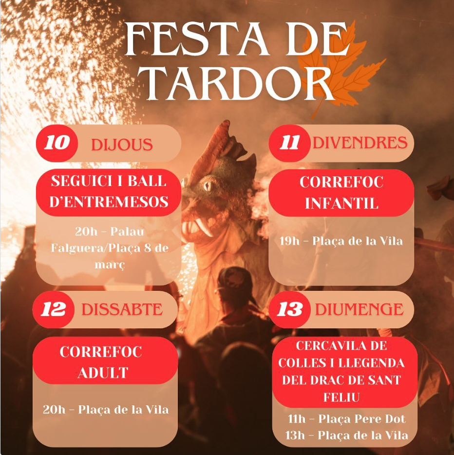 La Festa de Tardor de Sant Feliu de Llobregat tindrà lloc del 10 al 13 d’octubre de 2024 a Sant Feliu de Llobregat! Podreu anar a veure al Drac de Sant Feliu a tots aquests actes, us hi apunteu?