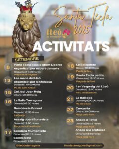 Arriba la Festa Major de Santa Tecla, i amb ella, el Lleó de Tarragona es deixarà veure en un seguit d’activitats! Us deixem els actes del 18 al 23: