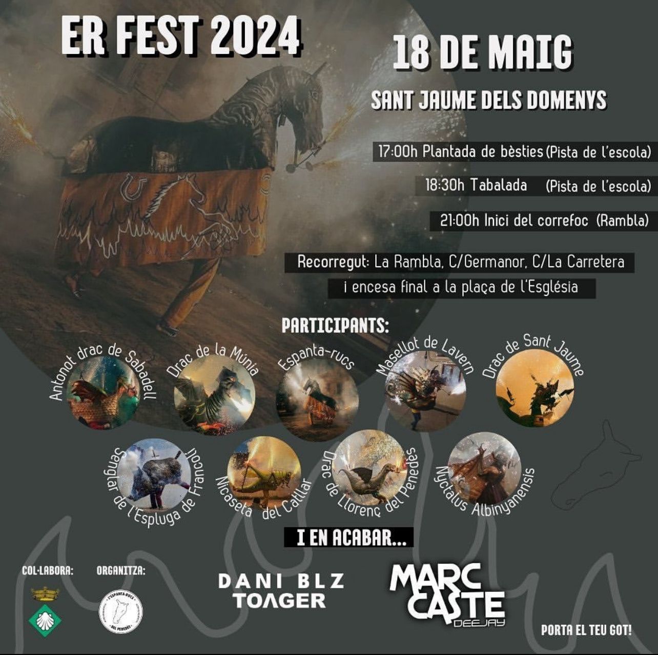 El pròxim dia 18 de maig a Sant Jaume dels Domenys, se celebrarà el ER FEST 2024!