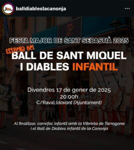 Aquest divendres 17 de gener, el ball de diables infantil de La Canonja torna al carrer! A més a més tindrà lloc l’estrena del Ball de Sant Miquel.