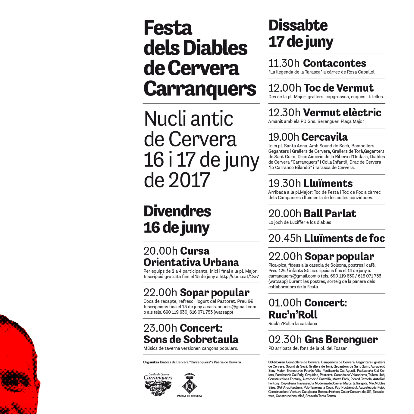Els Diables de Cervera Carranquers celebren la seva festa els dies 16 i 17 de juny de 2017.