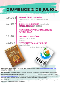 INSCRIPCIONS SOPARS i TICKETS INFLABLES: caseta festes i activitats.avvam@gmail.com / WhatsApp 630.864.648
