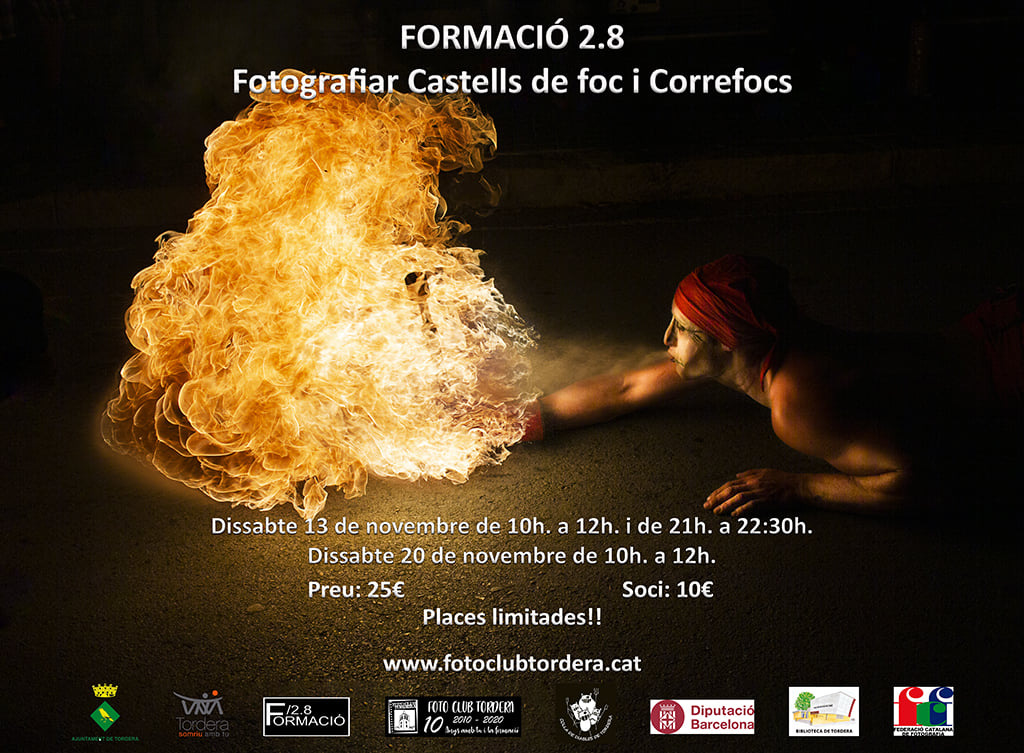 Dissabte 13 de novembre de 10 a 12 h i de 21 a 22.30 h es farà una formació sobre fotografia de correfocs i castells de foc. Dissabte 20 de novembre tindrà lloc una altra sessió de 10 a 12 h.