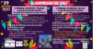 El dissabte 29 de juliol se celebra el segon aniversari del Gall amb la II Trobada de Bèsties d’aigua i la II Trobada de Bèsties de foc.