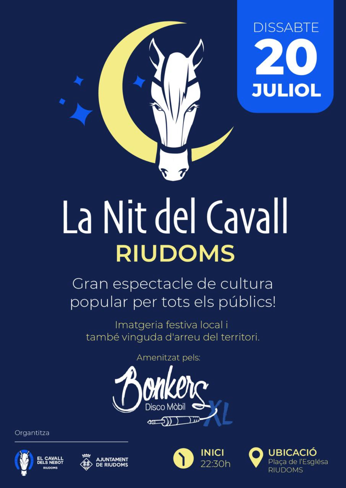 El pròxim 20 de juliol a partir de les 22:30 h a Riudoms se celebrarà La Nit del Cavall!