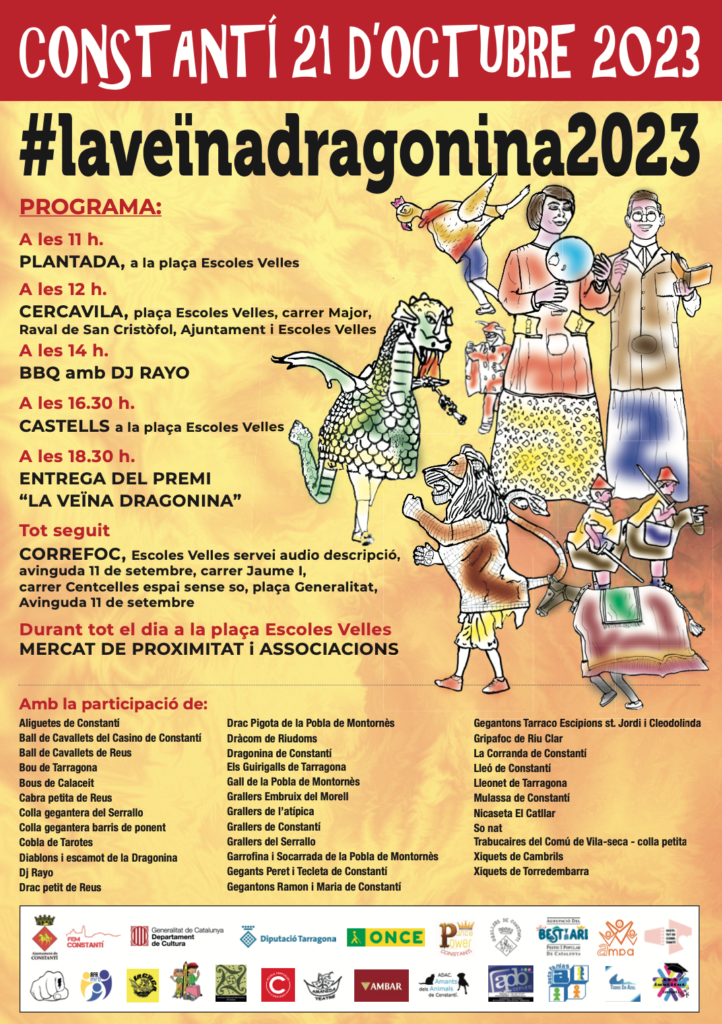 La cultura popular tornarà a ser la gran protagonista aquest dissabte 21 d’octubre en una nova edició de la jornada festiva #laveïnadragonina, organitzada per l’Associació Amics de la Colla C.O.C.A amb la col·laboració de l’Ajuntament de Constantí. La jornada s’allargarà durant tot el dia amb activitats molt diverses i comptarà amb la presència de més d’una trentena d’entitats i associacions procedents d’arreu del territori.