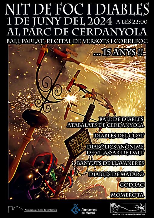 Correfoc de les festes del barri del Pla d’en Boet amb les Diablesses de Mataró, els diables Atabalats de Cerdanyola, el Drac de Mataró i el Basilisc de Mataró. A les 21:30h des de la plaça Joaquim Galí i Vergés, Ronda Francesc Macià, C. Sant Cugat i davant del poliesportiu Eusebi Millan.