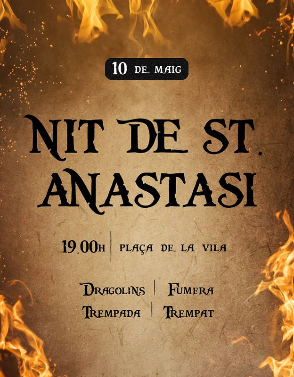 El vespre del 10 de maig, vigília de Sant Anastasi, se celebra la Cremada del Dimoni, acte emblemàtic de les Festes de Maig. La Nit de Sant Anastasi està formada per un conjunt d’actes que precedeixen la Cremada del Dimoni.