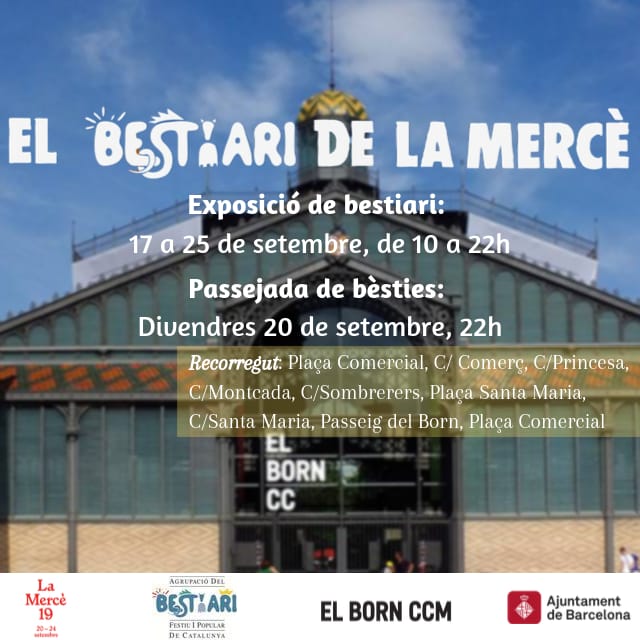 « All Esdeveniments Aquest event ja ha passat. Passejada de bèsties – MercèBCN 20 de setembre de 2019 22:00 a 23:30 Navegació d'Esdeveniment « Xerrada. Barret i mocador 40 anys després Foedus » + Google Calendar+ Exportar iCal Detalls Data: 20 de setembre de 2019 Hora: 22:00 a 23:30 Esdeveniment Categories: Activitats pròpies, Barcelona Ciutat Organitzador Agrupació del Bestiari Festiu i Popular de Catalunya Telèfon: 935175587 Correu electrònic: info@bestiari.cat Web: http://www.bestiari.cat Recinte Born Centre de Cultura i Memòria Plaça Comercial, 12 Barcelona, Espanya + Mapa de Google