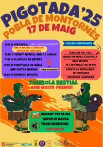 El proper dissabte 17 de maig, a La Pobla de Montornès, es celebra la Pigotada’25 amb una jornada plena d’activitats! La festa es durà a terme a la Plaça de la Bassa.