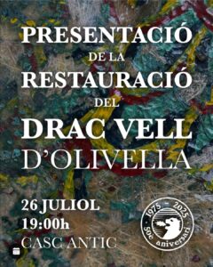 Tenim l’honor d’anunciar la presentació oficial de la restauració del Drac Vell, una de les peces mes emblemàtiques del municipi, que enguany compleix 50 anys. L’acte tindrà lloc en el marc del pregó d’inici de Festa Major i representarà el tret de sortida de la Festa Major del 50è.