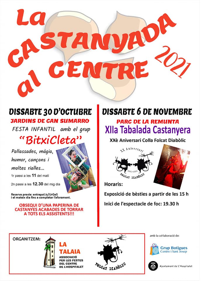 La colla de Diables Folcat Diabòlic farà el pròxim sis de novembre la Tabalada Castanyera que, aquest any com l’any passat, serà una mostra de les bèsties de les colles de la ciutat de l’Hospitalet. Elles són: la Moska (Skamot Diabòlic), la Dragona (ESJEP), l’Heura (Diables de la Florida), la Rata (Diables de Bellvitge), la Satània (Patunyetes) i el Folqui de Foc (Folcat Diabòlic), a més dels Gegants de Foc de la Coordinadora de Colles de Diables i Bestiari de Foc de Barcelona, la Lilith i el Nemrod.