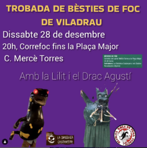 Dissabte 28 de desembre, a partir de les 18 h pots portar la cartal al Patge reial i a les 20 h, trobada de bèsties de foc amb correfoc!