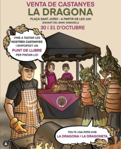 El proper 30 i 31 d’octubre, davant del Banc Sabadell (Plaça Sant Jordi), trobareu la Dragona de Les Roquetes del Garraf celebrant la Castanyada! Li podreu comprar: