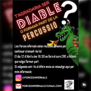El proper dissabte 12 d’abril la colla Les Forces Infernals del Poblenou farà un CRE a totes aquelles persones que es vulguin unir a la colla.