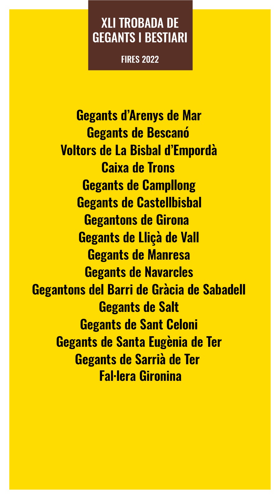Diumenge 6 de novembre, en el marc de la Fires de Sant Narcís de Girona, se celebrarà la XLIa Trobada de Gegants i Bestiari.