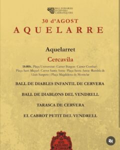 Arriba un any més l’Aquelarre de Cervera! On participarà el Ball de Diables infantil, la Tarasca de Cervera, el Drac de Cervera -Lo Carranco Bilandó- i el Ball de diables.