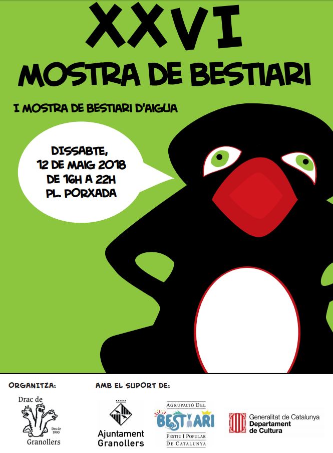 « All Esdeveniments Aquest event ja ha passat. XXVI Mostra de Bestiari de Granollers (I Mostra de Bestiari d’Aigua) 12 de maig de 2018 16:00 a 22:00 Navegació d'Esdeveniment « Cercabèstia – Festes de Maig de Badalona 2018 La Nit del Tararot » + Google Calendar+ Exportar iCal Detalls Data: 12 de maig de 2018 Hora: 16:00 a 22:00 Esdeveniment Categories: Activitats promogudes, Vallès-Maresme-Barcelonès Nord Organitzador Drac de Granollers Recinte Plaça de la Porxada Plaça de la Porxada Granollers, Espanya + Mapa de Google