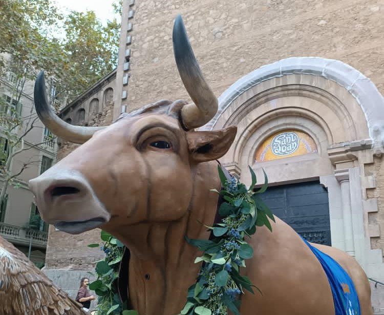 El Bou de Gràcia està inspirat en el Bou que representa l’evangelista sant Lluc al retaule de l’altar major de l’església de Sant Joan Baptista, a la plaça de la Virreina. Malgrat aquesta inspiració es va voler que tingués també un caire natural, de bèstia real, així que el resultat és una solució de compromís entre aquests dos models, sobretot pel que fa al cos.