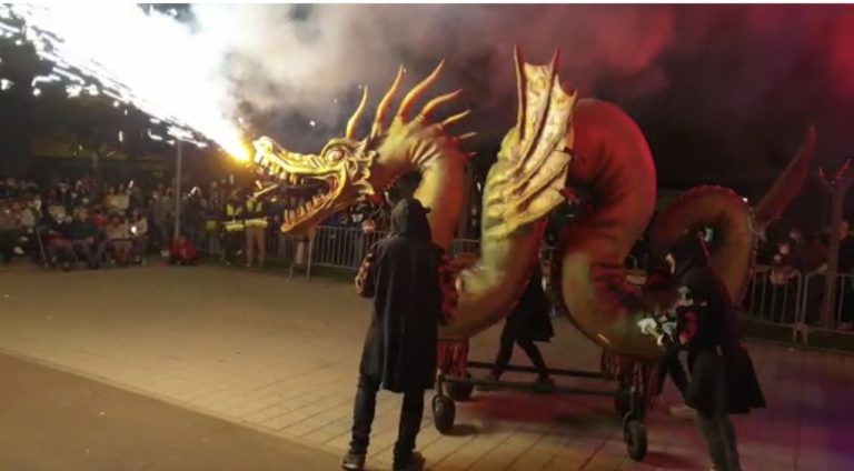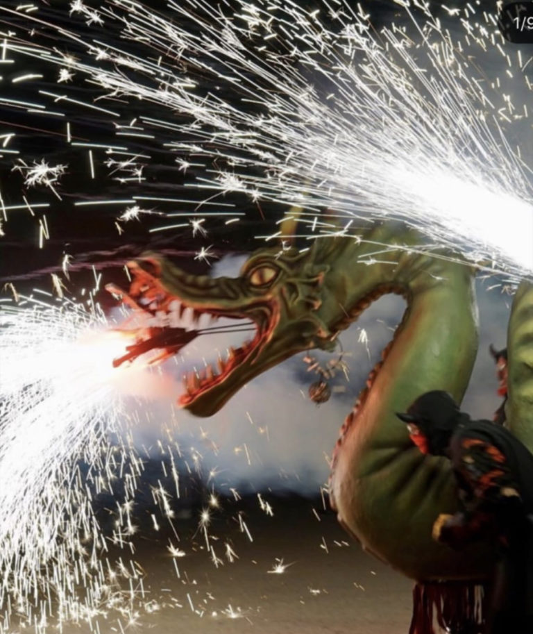 És un drac de foc arrossegat per quatre persones, molt dinàmic i lleuger.