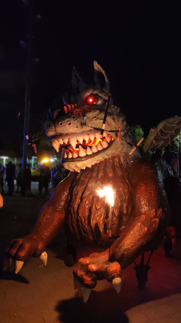 Disposa de 17 punts de foc distribuïts per tot el cos. A més d’un punt especial situat al llom des d’on es poden encendre petites bateries de foc. Té un punt d’aigua per refrescar al participnats el dies de més calor i donar diverió extra a la bèstia. Quan es fa fosc, ulls i boca s’il·luminen per a tenir un aspecte més imponent.