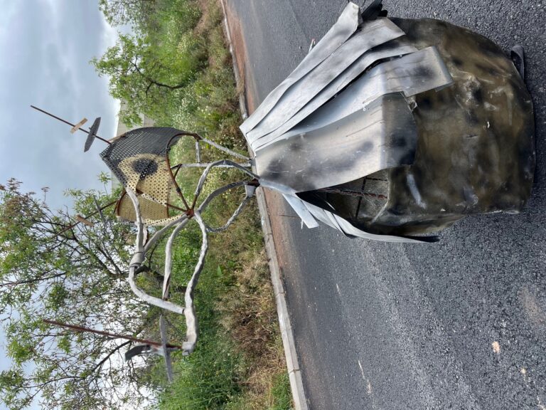 És un “corb” metàl·lic que reflexa tota la pirotècnia que engega, igual com l’aigua del riu reflexa el seu entorn. És el Corb del Riu Corb, una figura de corb per recordar el nom del riu i metàl·lic per fer els reflexes que recorden l’aigua del riu.