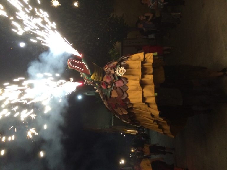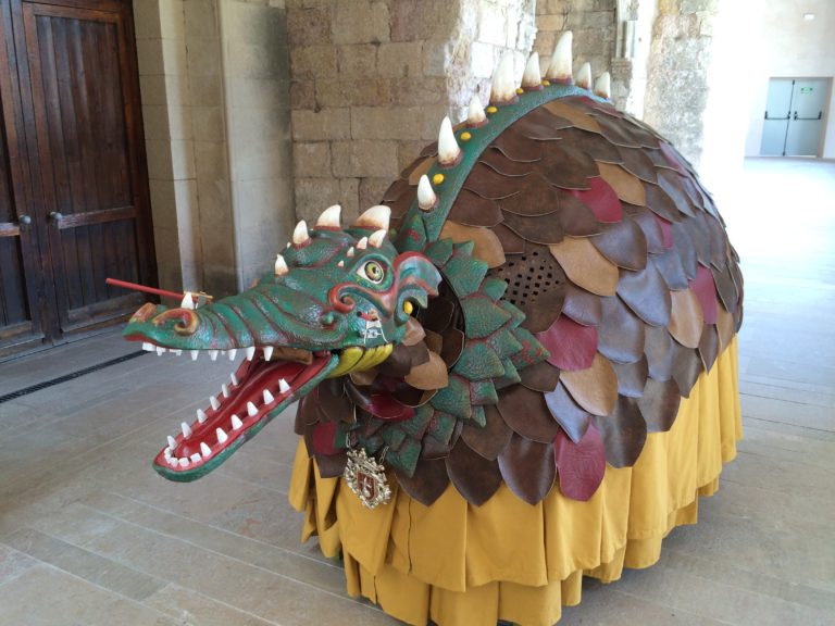 Obrada en resina de polièster el cap, la cua i la cresta. Cos de fusta recobert d’escames de pell sintètica. Ulls de vidre i mandíbula mòbil amb dents de ferro. Penjada del coll hi duu una medalla amb l’escut de la vila com la que duen els regidors de l’Ajuntament. Compta amb dos punts de foc pirotècnic a banda i banda de la boca i cascavells dins de la cua, tot i que actualment és figura de protocol i no llança foc.