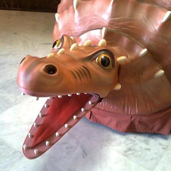 La closca i la cua d'una peça, en reïna i fibra de vidre, la duresa d'aquest material ha permès minimitzar l'estructura interior, concretament el seu ús a les espatlleres, al mecanisme de moviment del cap i al suport de les quatre potes. S'ha dotat la cucafera d'un mecanisme de moviment del coll i de tancament de la boca, amb dents metàl·liques. A més, s'ha dotat la bèstia d'unes faldilles de roba que cobreixen la part baixa de la figura.