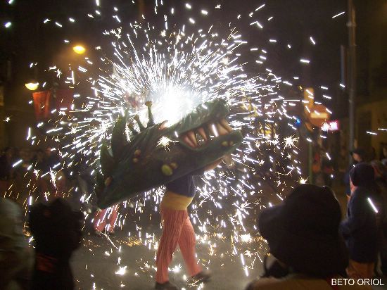 Després d’uns anys de poca activitat, Badalona Bèsties de foc recupera aquest figura del bestiari català per fer-la saltar i ballar amb els seus dracs, en principi en el correfoc infantil que organitza l’entitat, i ja renovat s’integra a totes les nostres actuacions.