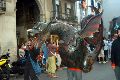 El Drac va ser presentat en societat durant les Fires i Festes de la Santa Creu, el dia 2 de maig de 1.999. Simbolitza un drac mitològic que treu foc per la boca, i diferents llocs de la llarga i recargolada cua. És com el drac que figura en els dibuixos i la façana del Teatre Municipal “El Jardí”, amb la cua una mica més recargolada per facilitar-li el moviment El va construir, al llarg d’uns quants mesos de 1.999, l’Ettore Battaglia, de Figueres, amb fibra de vidre i les ales amb un material de tela dura i flexible per facilitar moviment. Està pintat de tal manera que també sigui vistós sense foc, amb color “verd drac” a la pell, amb taques i restes de sang de les seves víctimes, una boca també amb sang i adornada amb grans ullals, amb ulls sanguinaris i cara de “mala llet”. És autoportat per una persona que es fica a l’interior. Als primers anys l’han portat sempre gent dels Amics dels Gegants. L’any 2001 va sortir un grup de jovent que ha anat formant l’equip del Drac. S’han anat organitzant com a diables i han après el domini del foc, tant pel que porta el Drac a la boca i cua, com el que porten ells. També han format un equip de tabalers que són l’acompanyament musical habitual, substituint als Grallers de Figueres que l’acompanyaven fins aleshores. Són un nombrós grup de persones format per bastaixos, artificiers i tabalers.