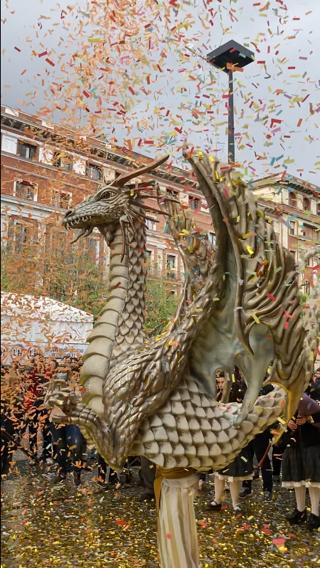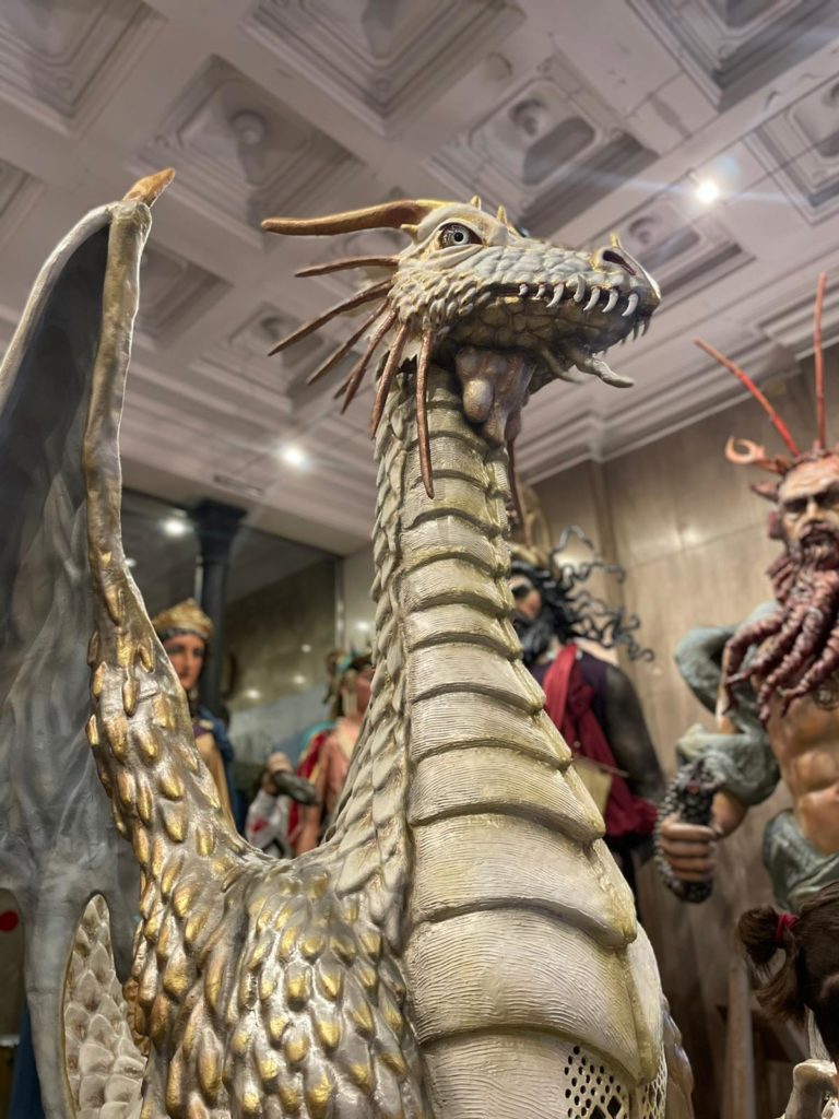 El drac es obra de l’escultora Dolors Sans i Osete, en homenatge pòstum al president de la nostre colla Ramón López. La bèstia té un disseny d’un coll llarg i vertical que fa la sensació d’una peça espiritual, per sobre dels humans. El cap de drac té la boca tancada per tal de donar-li noblesa i serenitat, fugint de l’agressivitat habitual dels dracs.