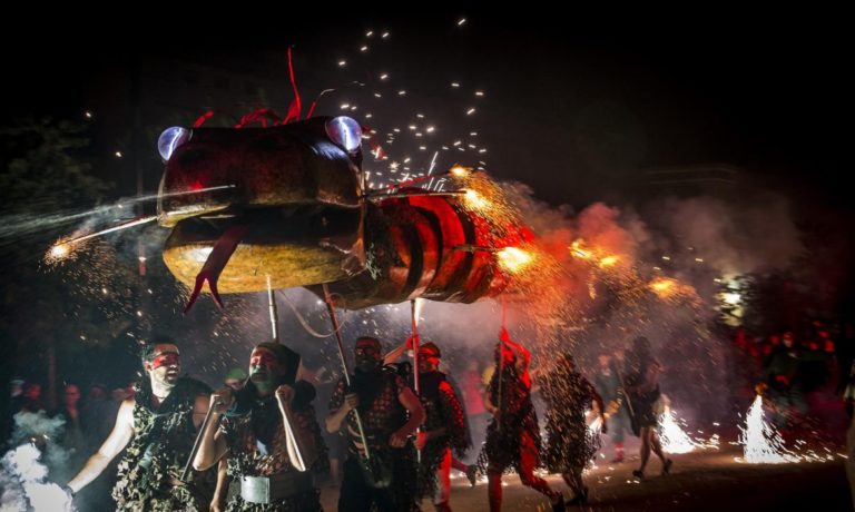 Colla de diables Serpents de Manlleu, juntament amb Andreu Bresca i Pere Francesc dels Comediants