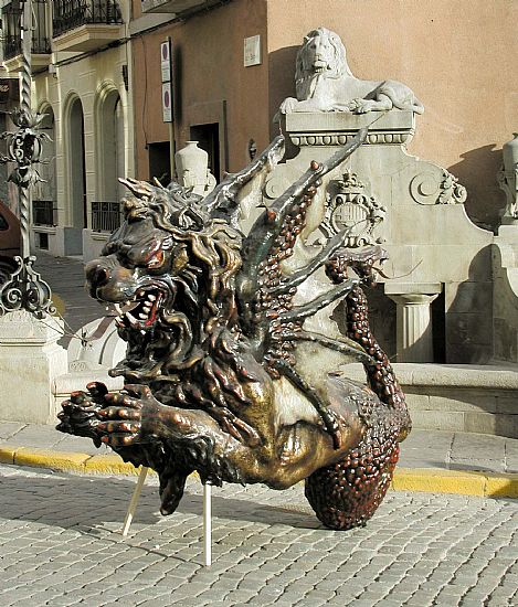 A Caldes s’explica que és l’esperit malèvol de la Font del Lleó, que desperta dos cops l’any: pel ball que precedeix els versots de Festa Major (el segon dissabte d’octubre) i durant l’Escaldàrium, la festa del foc i l’aigua, que narra el naixement de l’aigua termal (el segon dissabte de juliol). És per aquesta vinculació amb l’aigua que se li han afegit escames a bona part del cos, conjugant, en una sola fera tots els elements: el foc (que llença per tot el cos i que vol representar l’escalfor de l’aigua termal, 76ºC ), l’aigua (fent referència a la de la font que li dóna vida), la terra i l’aire.