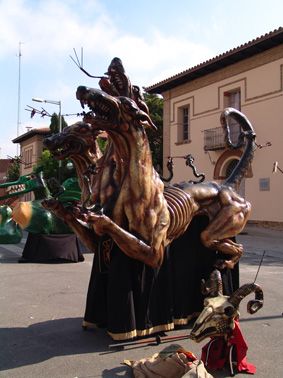 Té tres caps de gos llebrer i del seu cos li surten 5 serps. És el gos defensor de la porta de l’Infern.