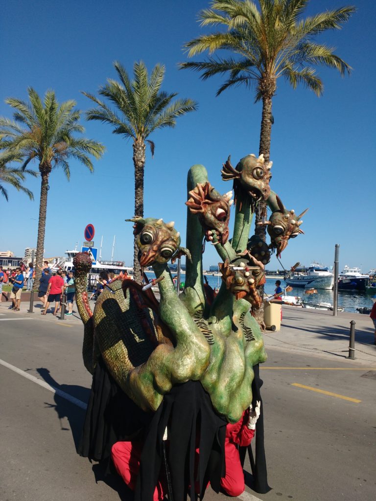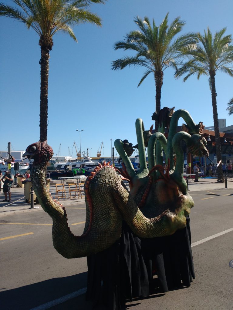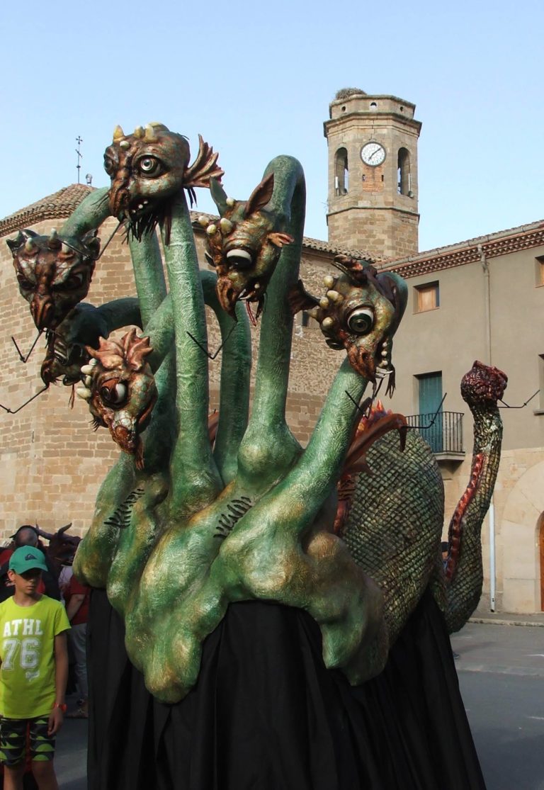 Breu història de la figura: El dissabte dia 4 de juliol del 2015 es va estrenar l’Hydra d’Artesa de Lleida. Es tracta d’un drac per a nois i noies amb arrels mitològiques, seguint la idea del Griu de la mateixa colla d’Artesa. El disseny s’inspira en el mite de la Hidra un drac format per molts caps en forma de serps. La serp és l’animal que dóna origen al concepte de drac. L’Hydra té 7 caps, sis al davant del cos i un darrer a la cua. Els sis caps de davant són de drac mentre que el cap de la cua és el cap del Griu quan era petit i d’aquesta manera es fa una referència directa al drac que ja tenen a Artesa i que es va dissenyar l’any 2006.