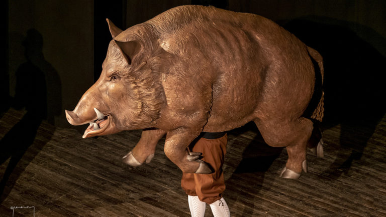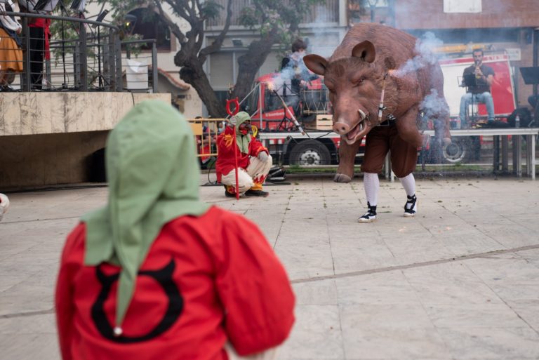 Es tracta d’una bèstia amb doble funcionalitat. Pot participar en cercaviles o actes diürns, de forma mansa i divertida, així com en correfocs o actes nocturns, de manera ferotge i llançant pirotècnia. Compta amb 11 punts de foc i és carregada internament per una persona. La Porca participa al Seguici Inaugural i a “La Llegenda del Cirerer” durant l’Exposició de Cireres (maig), i a l’Esclat, el Correfoc i la Cercavila de la Festa Major de Sant Climent (novembre).