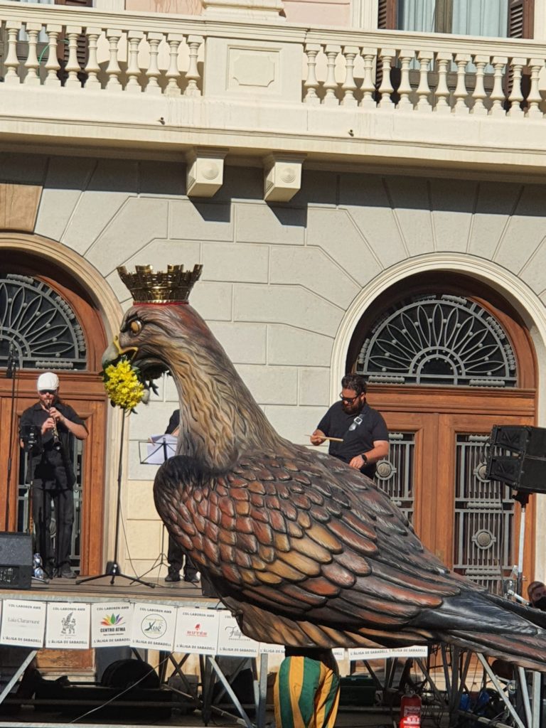 L’Àliga de Sabadell va ser estrenada el 10 de juliol del 2021 i està inspirada en l’àliga perdiguera o cuabarrada, una espècie en perill d’extinció catalana per realitzar la figura. És una figura portada per una sola persona, de posat solemne, amb les ales plegades, i l’expressió alhora ferotge i vigilant. Com a símbol del poder municipal, duu una corona al cap i un ram de flors amb dues cebes penjant, per fer referència a la ciutat de Sabadell.