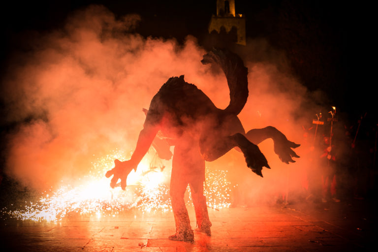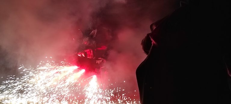 Finalment, a través d’un procés participatiu, els membres de la colla van acabar decantant-se per la figura de la Lloba Llepa-sang i la seva llegenda.