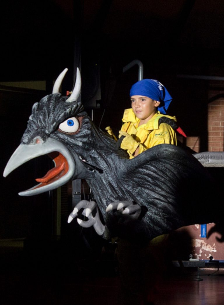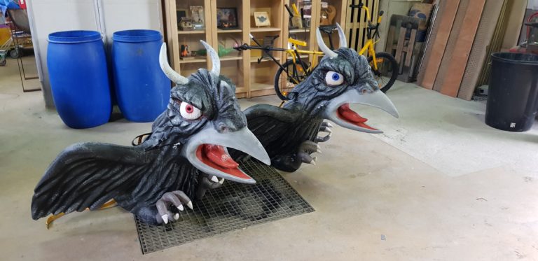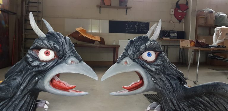 Com a curiositat les dues figures són iguals però es distingeixen per el color dels ulls ja que un els te blaus i l’altre vermells com a atributs als colors de la competició de la festa major de la vila.