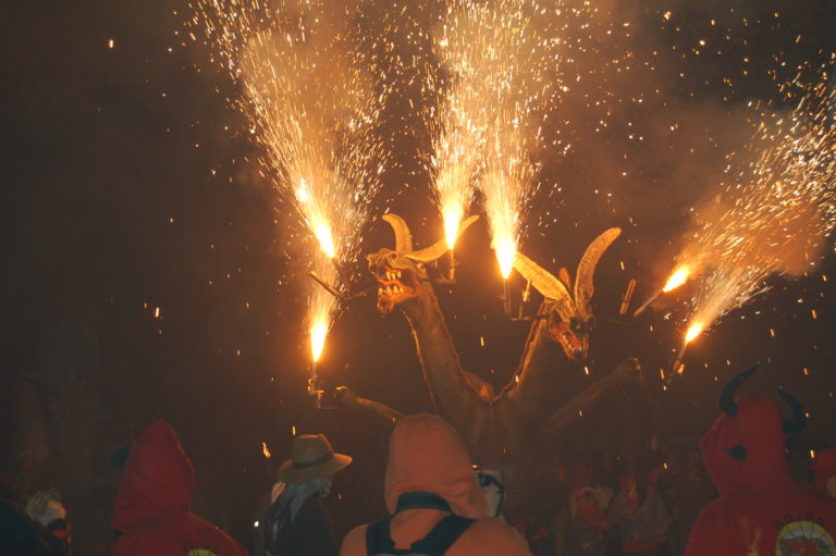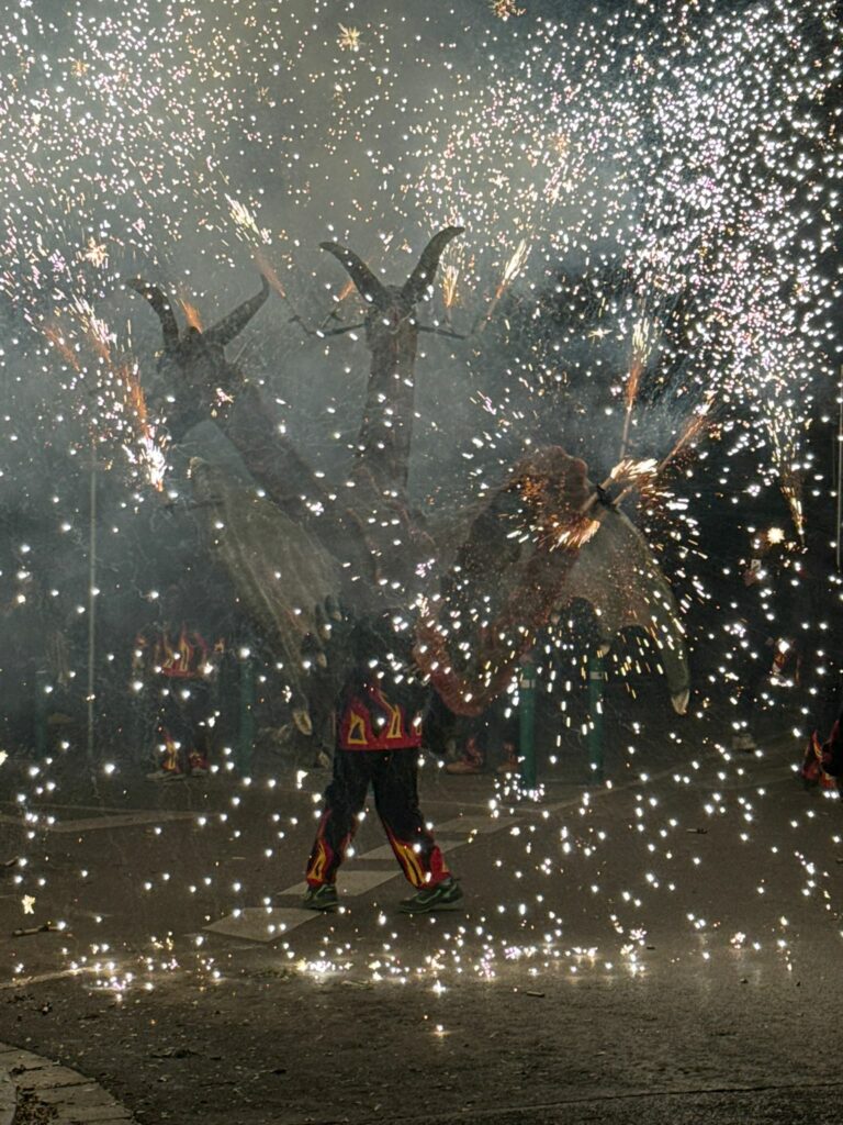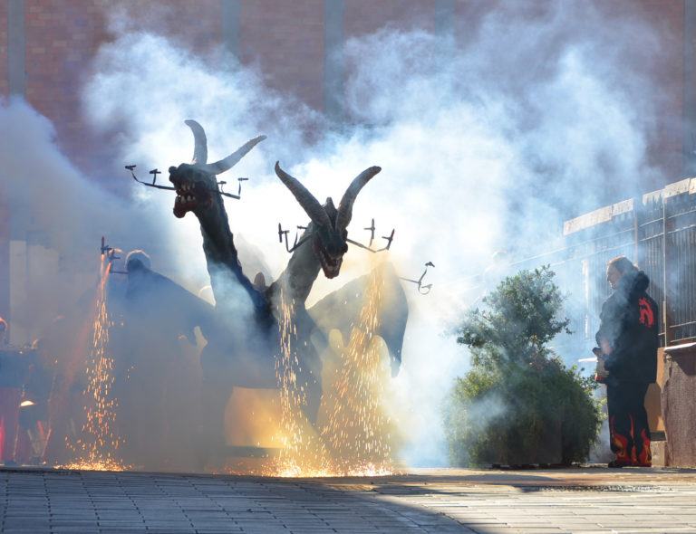 El nostre drac és una impressionant criatura de dos caps que desperta admiració allà on va. Amb un pes de 40 quilos, és portat majestuosament per un portador expert. Dotat de 7 punts de foc, la seva presència en l’espectacle és simplement espectacular i captivadora per als ulls dels qui tenen el privilegi de presenciar-lo.