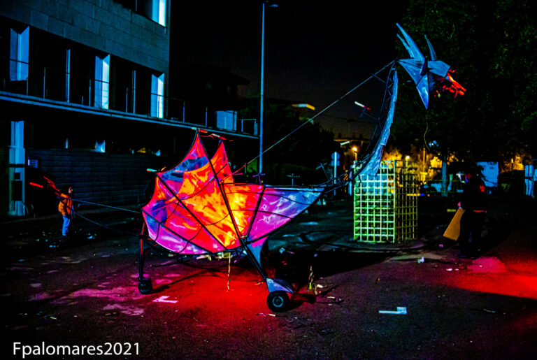 A principis de la dècada dels vuitanta un grup de joves de la Colònia Güell veuen en l’associacionisme juvenil la possibilitat d’engegar un projecte i crear una colla de diables. En 1991 un fet important marca la trajectòria de la colla, la creació d’un Drac. L’Ajuntament de Santa Coloma de Cervelló encarrega a l’empresa Buit Sent Buit la construcció d’aquest. Serà una figura de ferro, revestida amb tela metàl·lica. L’estructura va pintada i muntada sobre rodes. L’animal mitològic inclou, a més, un mecanisme d’il·luminació per als ulls i ales alimentat per bateria.