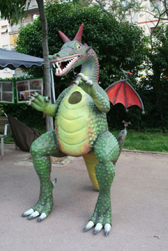 Els responsables de la bèstia van agafar la víbria i la va fer saltar amb tirolina des de sis metres d’alçada, amb uns cables d’acer, i a mig recorregut la van deixar caure i va quedar dreta davant del Baró i va cremar-lo.