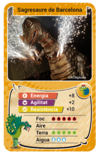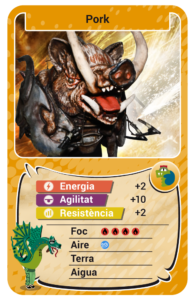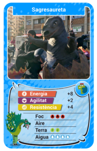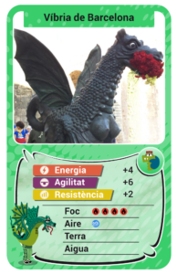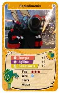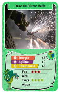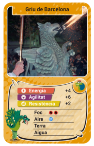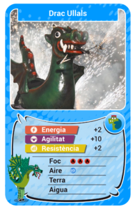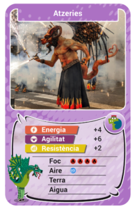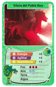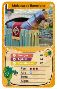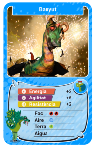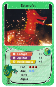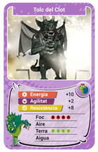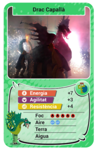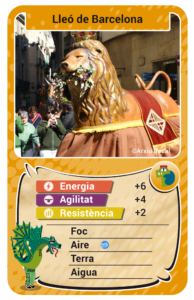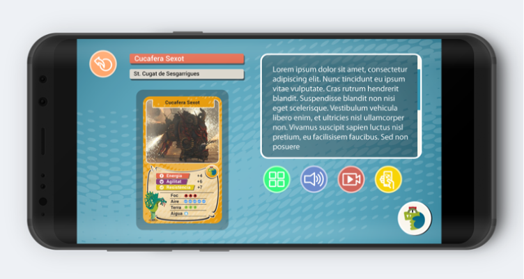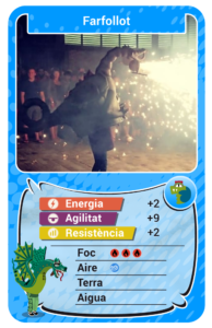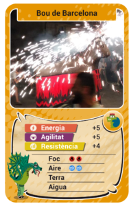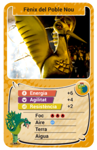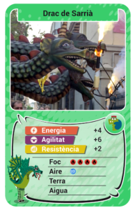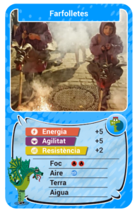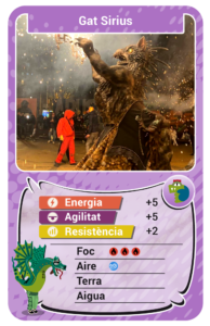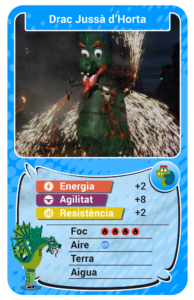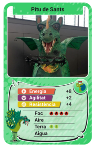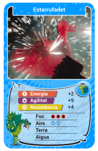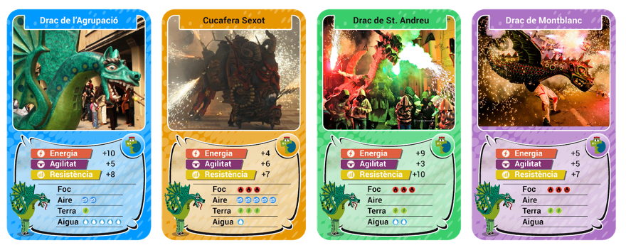 Ja que a l’aplicació hi ha una pantalla per a cada peça d’imatgeria festiva on es fa una petita descripció de la figura, la informació de la carta relacionada amb l’energia, l’agilitat, la resistència i els quatre elements naturals és complementària i permetre fer-la servir com a joc.