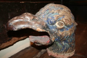 Els caps de les àligues, eren de fusta massissa i si no estaven coberts de pell, estaven pintats, com el de l’Àliga de Cervera, de 1738 tot i que està documentada el 1423, que a banda de tenir tons blaus, també estava daurat.