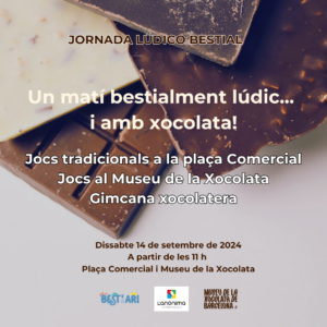 [2025-09-18] El dissabte 20 de setembre de 10 h a 14 h a la plaça Comercial, tindrà lloc La Jornada Lúdico Bestial 2025 que enguany acollirà la 5a Fira de Colles de Bestiari, en la qual les diferents entitats podran mostrar… (...)L’Agrupació Bestiari programa activitats inclusives i de cohesió comunitaria en el marc de La Mercè 2025